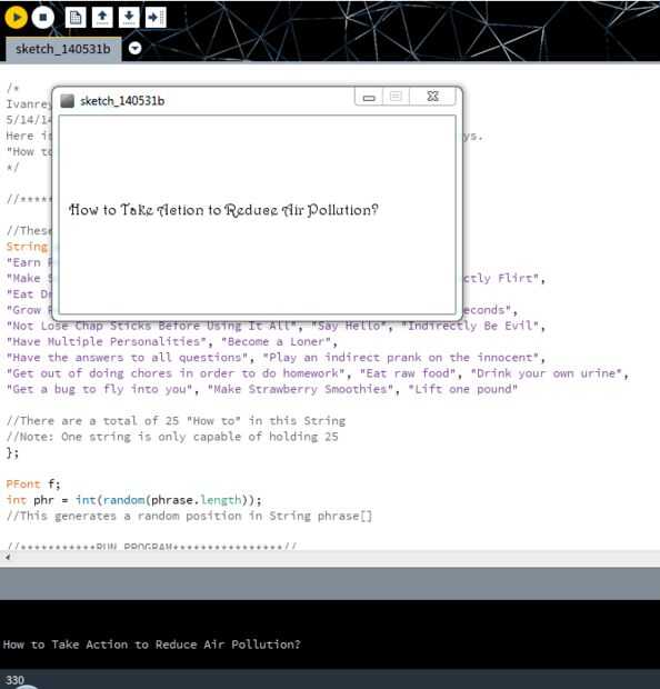 El propósito de este Instructables es mostrarle, paso a paso, cómo hacer un generador de frase al azar utilizando matrices en el programa, de procesamiento.