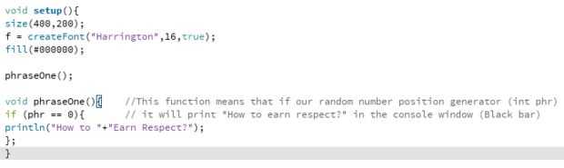 El objetivo de esta función será Imprimir "Cómo ganarse el respeto" si el generador de números al azar de la posición es igual a 0.
