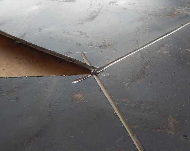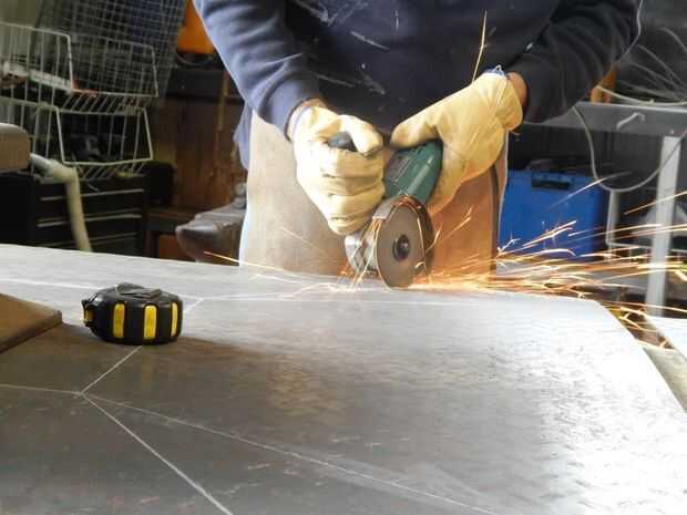 Con un disco de corte cortar las piezas de esquina como se muestra.