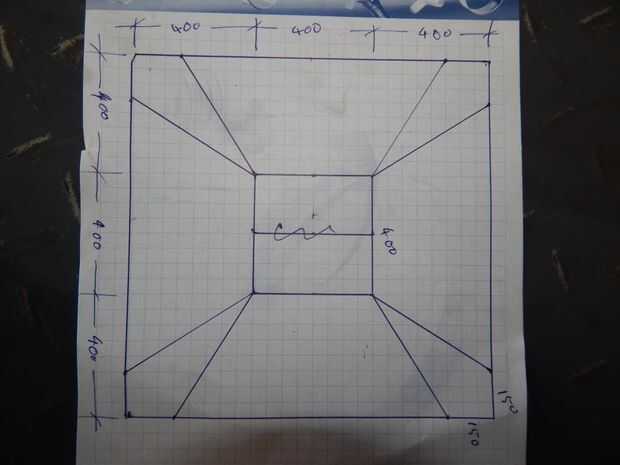 Salga de su cinta de medir y marcar la placa de acero como lo he hecho en el bosquejo.