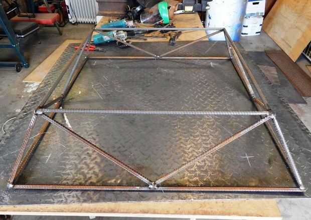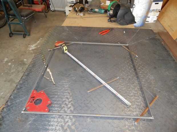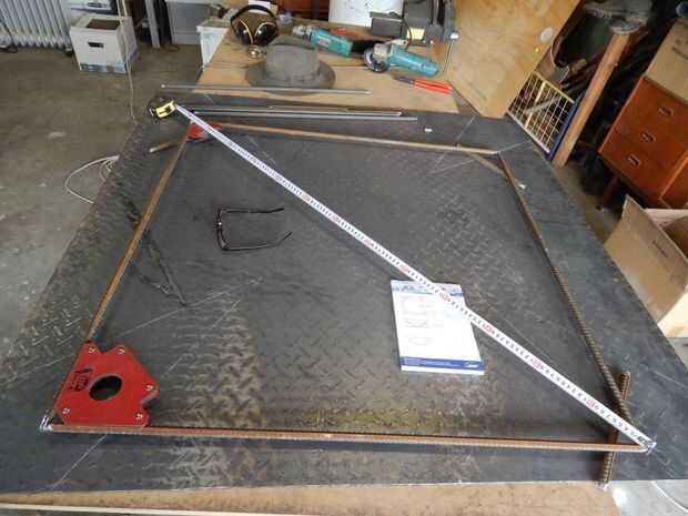 Establecer las plazas hacia fuera de cuidado para asegurarse de que son cuadrados y soldadura de las esquinas. Consejo: medir las diagonales de los cuadrados antes de la soldadura para asegurarse de que son realmente cuadrados - deben ser iguales.