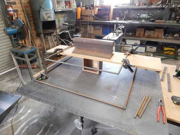Cuando tengas los dos cuadrados formados es el momento para ir 3D. Encontré este pedacito a ser bastante incómodo. Puedes ver en las fotos que apoyado el cuadrado pequeño en algunos trozos de madera etc. para llegar a la altura correcta y la posición. Una vez que el cuadrado pequeño en una satisfactoria posición de medida y corte de algún bar para ir entre las esquinas. Coloque estos y ligeramente soldarlas. Cuando los cuatro se viraron en su lugar usted puede deshacerse de los soportes temporales.