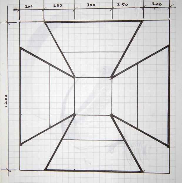 Yo quería hacer un hoyo de fuego más compacto que sería conveniente para los patios más pequeños. Me imaginaba que yo podría hacer un soporte del fuego hoyo de una sola hoja de acero, pero me realmente no podía imaginar cómo saldría. La solución simple fue hacer algunos modelos simples de papel milimetrado y comparar los resultados.