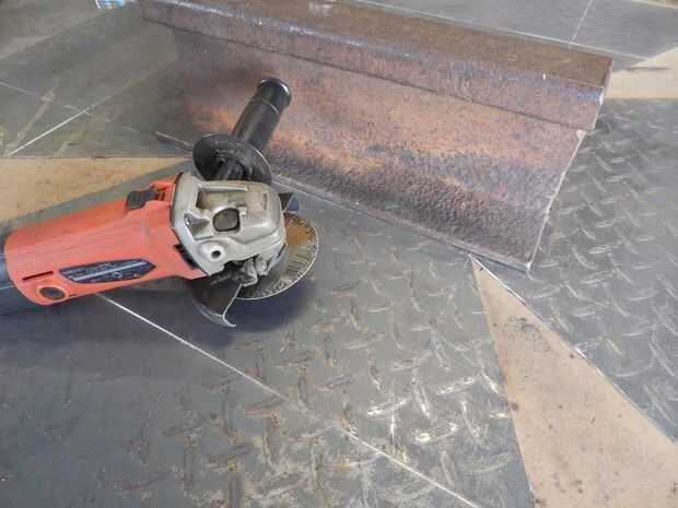 Con su disco o muela preparar los bordes de la "V" s en las esquinas para la soldadura. Si no lo haces ahora puede lo sentimos más adelante.