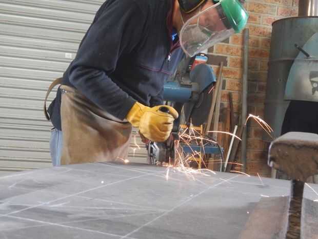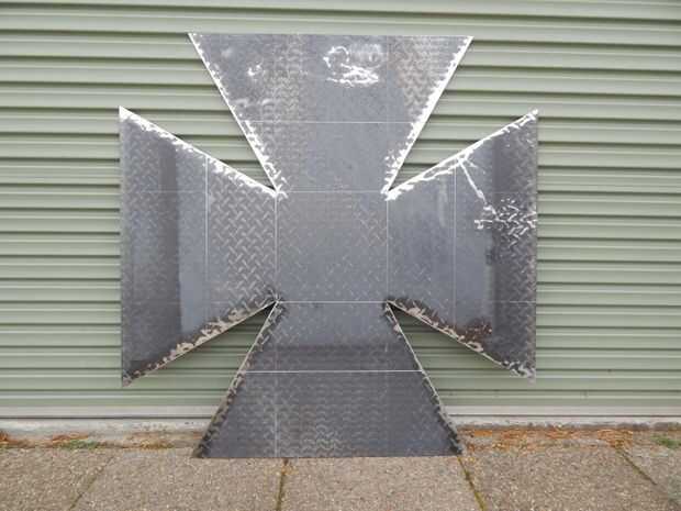 Utilice un disco de corte en su amoladora angular para cortar las cuatro "V" s de las esquinas.