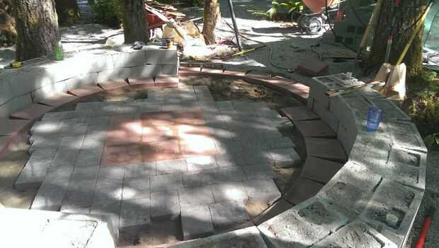 El fin de semana siguiente nos había quitado el encofrado de tablero doblador, había quitado algunos grava del centro del hoyo, había lo había prensado, había añadido un montón de arena y había nivelado a medida de lo posible. Este fue nuestros primer adoquines instalación tiempo por lo que el proceso tomó mucho tiempo. Nos cambiar diseños de diseño cerca de 3 veces y finalmente había colocado en forma de diamante en el centro con los adoquines rojo puso a los adoquines grises en un patrón linear del centro y había alineado al borde de la pared con adoquines rojos así.