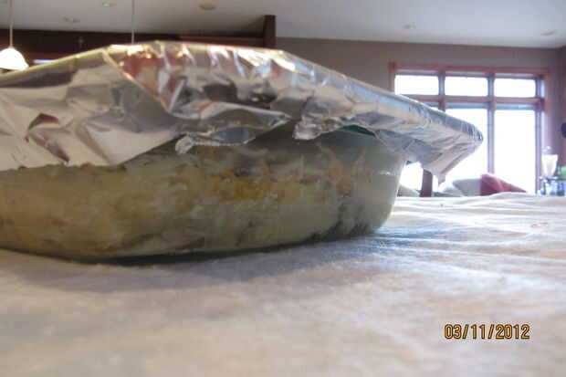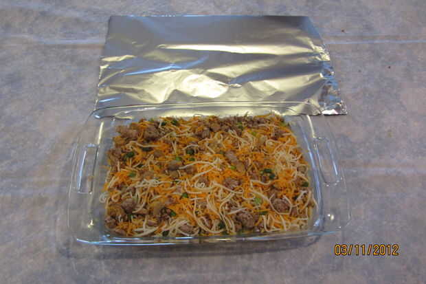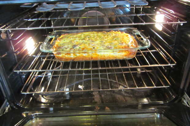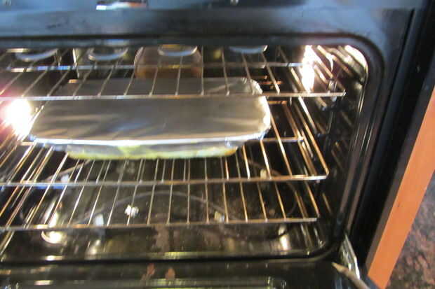 Si decides cocinar el huevo horneado en una fecha posterior, coloque el huevo horneado sobre una superficie plana en el congelador. Si quieres cocinar tu huevo cocer ahora, coloque el huevo horneado en el estante medio del horno que estaba precalentado a 350F. Cueza al horno el huevo debe ser cocinado con la tapa en 40 minutos. Después de 40 minutos, quite la tapa del horno huevo y continuar la cocción durante 20 minutos.
