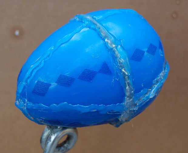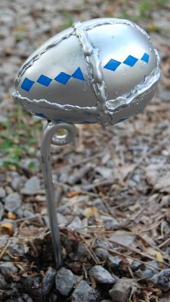 Tuve alguna pintura en aerosol plata sobrante de un proyecto anterior, por lo que opté por usar eso. Es muy conveniente tener un juego de espiral gigante sobresale el óvulo que podría conducir en el terreno de la pintura. Unos minutos más tarde y tenía un huevo lleva una semejanza uncanny a una Santa Granada de mano.