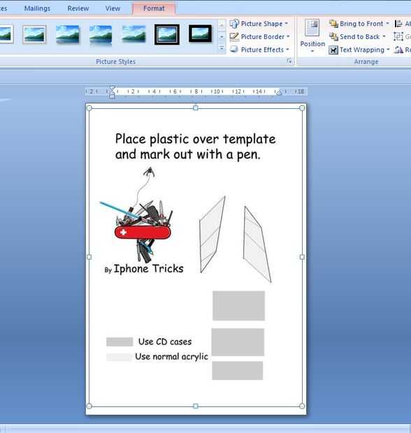 Coloque una caja de Cd en la parte superior la plantilla abajo y use un lápiz para marcar los puntos clave en las esquinas. Sólo necesita marcar las 3 formas de gris más oscuro superior.