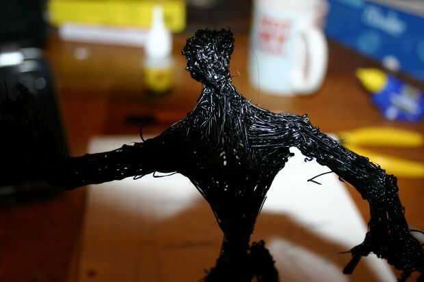 17: luego coloque los brazos en los hombros por los trabajos de soldadura en con la pluma de 3D. Mezclarlos siguiendo la línea de dirección que ya ha hecho en el cuerpo.
