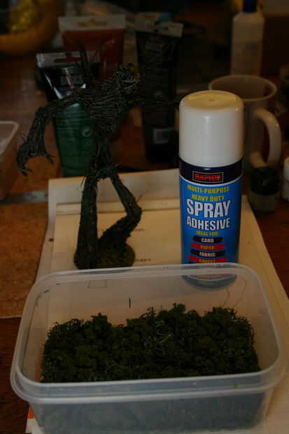 27: en un área bien ventilada o al margen de la parte superior del modelo y ramas con el pegamento del aerosol del aerosol, luego coloque en el bote de bandada mixta grupo y liquen. Repita este proceso tantas veces como te gusta, pero 2 - 3 veces debe ser fino.