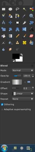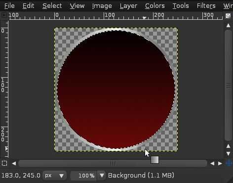 Haga clic derecho sobre la capa de aluminio y haga clic en "Alfa a selección". Ir a la nueva capa creada y vaya a Select > encogimiento... Y reducir la selección por 5-10 píxeles. Ahora ve a la herramienta de degradado y escoger FG a BG. Definir ahora los colores correspondientes (primero = segundo FG = BG) a los colores que te gusta. Elegí un negro a un rojo. Hacer un gradiente recto de arriba a abajo.
