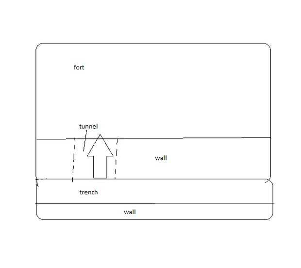 Mantener la excavación con dos palas hasta llegar a otro lado. Luego ampliarla. Túnel hecho! Punta del fuerte de nieve: Si su jardín está en una colina, puede hacer un zanja exterior y la pared como el plan a continuación.
