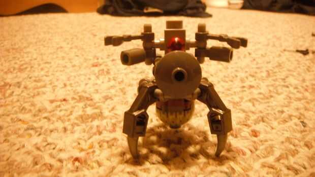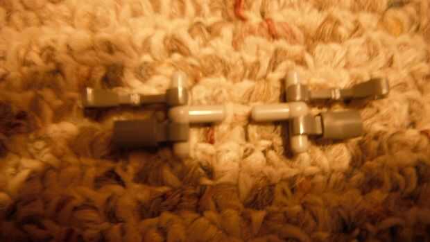 Poner las piezas binoculares-como en los laterales y pernos prisioneros de la parte inferior como se muestra y asegúrese de que se enfrentan a distanciadesde el ojo y el escudo. Entonces, las barras de T y coloque un brazo de droides y un agujero-brazo en cada uno-probablemente desea que el brazo de droides en la parte superior. Conéctelos como se muestra.