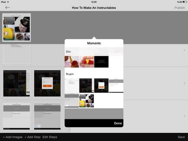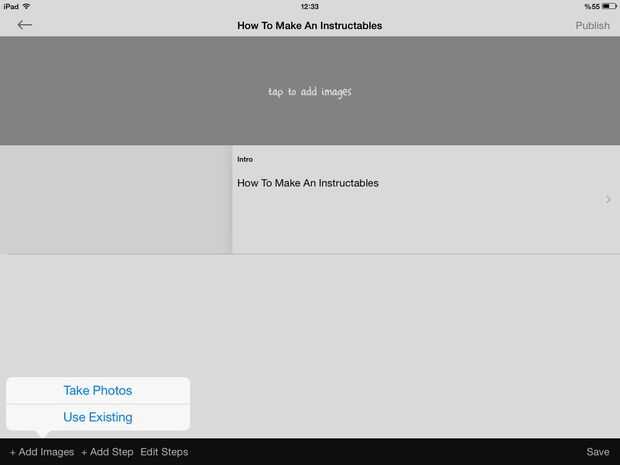 Ahora empezar a editar tu Instructables. Si quieres añadir fotos o un paso, mira en la esquina izquierda-bajo. Dice + agregar pasos y + agregar fotos. Haga clic en los pasos para escribir tu idea. Cuando se toma una foto, se trata del espacio superior. Selección y arrástrelo al espacio del paso que desea.