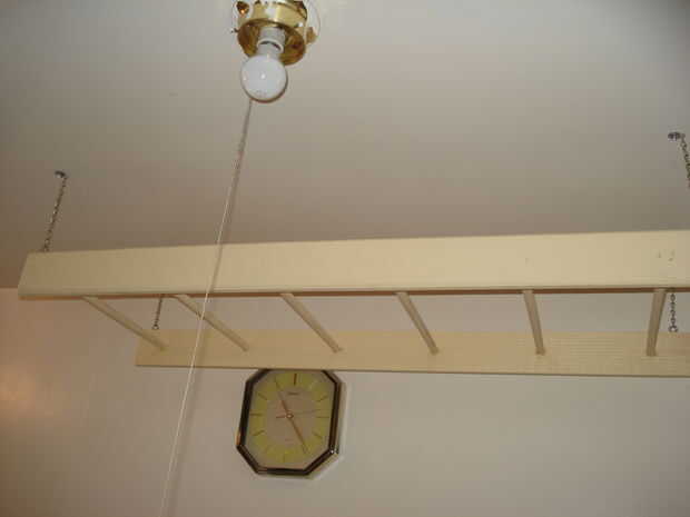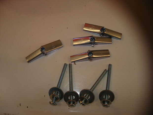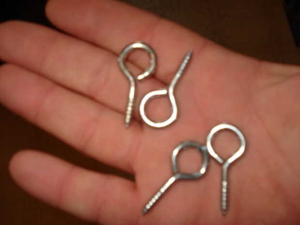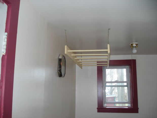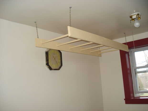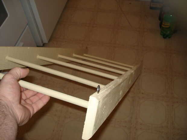hecho un estante colgante simple de un pice de 24" largo x 3.5" de ancho x 3/4" espesor alisoLijado, teñido e hizo una capa de poliuretano.Corte 4 agujeros para algunas perillas de cajones de coste.Después de roscar en corta los hilos extra