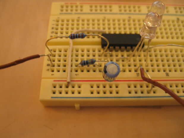 De la soldadura de los cables en el bote.  Conectar a la clavija 3, 5, o 6 y el otro a la resistencia de 2.2 k y probarlo.  Utilice la olla para ajustar la velocidad del flash.