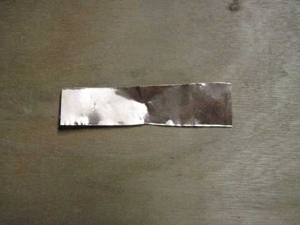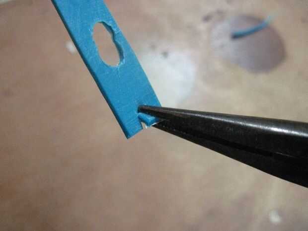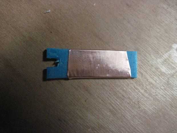 Ahora corta un rectángulo largo de 1" de la cinta de cobre que quepan en la bolsa de plástico con sólo un poco doblado sobre los lados para mantenerla en su lugar. Asegúrese de que dejar aproximadamente 0,25" de plástico expuesta en cada extremo de la culata. Antes de poner la cinta en su lugar, sería una buena idea colocar una pequeña gota de pegamento en el plástico en primer lugar, sólo para asegurarse de que no se mueva.
