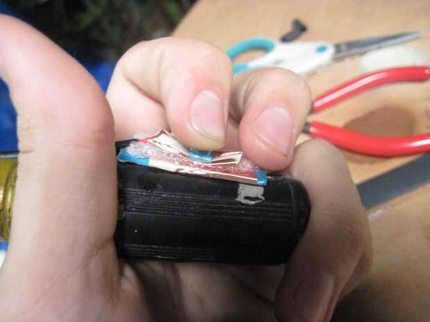 Conecte un multímetro y sosténgala contra, digamos, un destornillador para tener una idea de cuánta presión se necesita para encender. Ajustar según sea necesario, porque esta es la última oportunidad para probar el interruptor antes de sellar para bien.