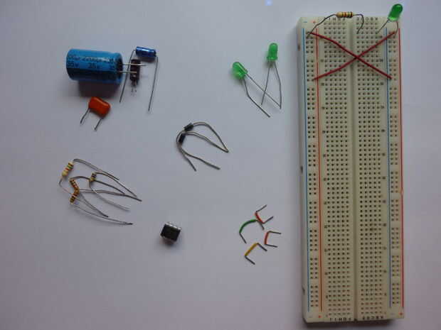 -1 x Bredboard (para montar todo sobre, usted podría incluso utilizar una pequeña placa perforada para soldadura todo en)