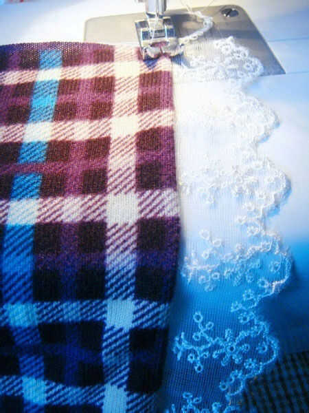 Paso 3: coser encaje en la parte superior de la manga, la presión de 1 cm el lado de la línea. otros que hacen lo mismo