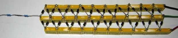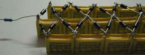 El arreglo de discos terminado alto voltaje voltaje multiplicador es entonces pegada a la pared lateral del tubo del ega, que también ayuda en la separación de componente para evitar los altos voltajes de saltar a través de componentes.