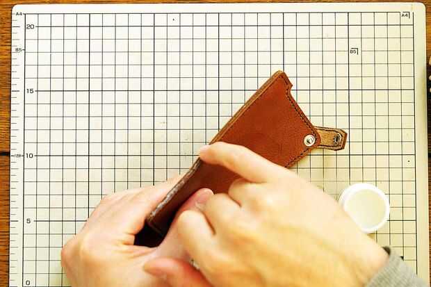 hice el iPhone chaqueta.Porque es el iPhone chaqueta que es muy simple, fácilmente puedo hacer!!Paso 1: Cortar a lo largo de una plantilla de cuero Corta cuero a lo largo de una plantilla.Cuando corté la parte de la curva, corté para activar una plan