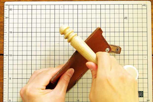 Aplique aceite en el borde de la piel y pulir con el palillo de la madera.