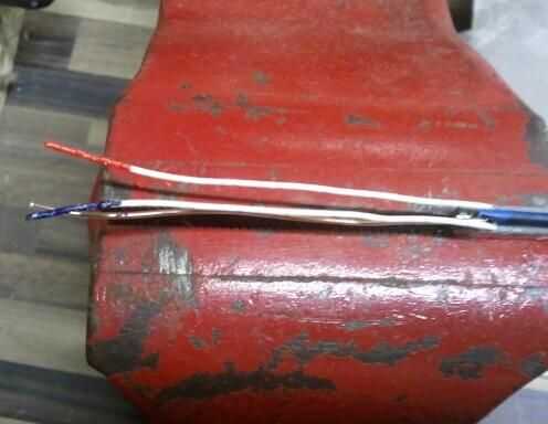 Ahora es un buen momento para etiquetar los cables. Usé pintura roja para la derecha y azul para la izquierda - como es tradición. Ten cuidado, si usas cables teflon cubierto que esto pronto va desgastando. Más en eso más adelante.