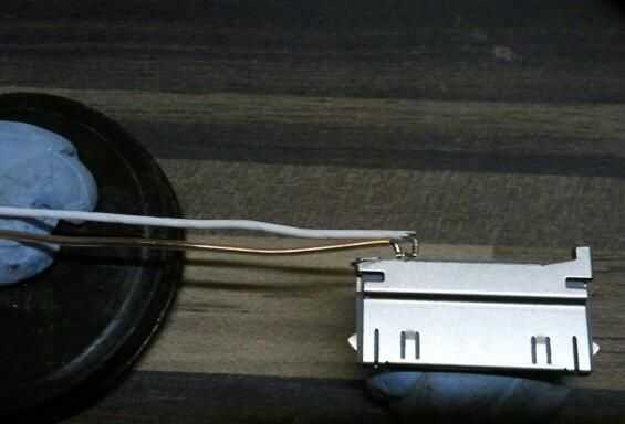 Coloque el cable en posición y mantenga el soldador sobre ésta hasta los flujos de la soldadura en la espiga. Repetir. Debe haber suficiente soldadura en el hilo de lo de estañado.