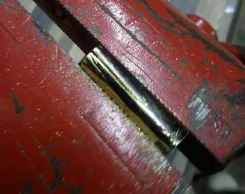 Mantenga esto en la prensa de banco y corte a través de una pequeña sección del tubo. Gire el tubo y hacer otro corte. Repetir esto hasta que se corta alrededor de todo el camino. Hacer pequeños cortes todo el camino alrededor impide que la hoja de atar para arriba, da un corte más preciso y es más fácil.