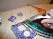Alinee las aberturas cuidadosamente y planche el material del parche en la parte posterior de la otra tela.