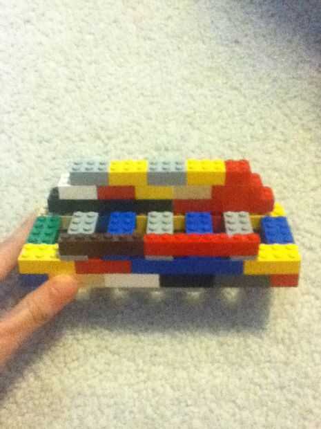 a un lado más largo del rectángulo, añadir 2 4 x 4 piezas y la pieza de 2 x 2. Luego de eso Agregue 2 4 x 4 piezas. Luego de eso Agregue 3 2 x 4 piezas y la pieza de 2 x 2. Luego en el otro lado largo del rectángulo, añadir un 1 x 6 pieza y la pieza de 1 x un 8. Ahora puede sentarse, relajarse y disfrutar de no tener que sostener el dispositivo!