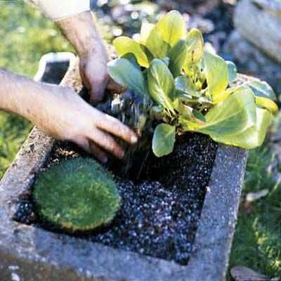 La mejor siembra mezcla de alpines es tierra con arena, arena y pequeñas piedras. Una capa de grava en el fondo del canal es opcional pero será mejorar el drenaje. Antes de llenar el comedero, poner un trozo pequeño de malla de alambre sobre cada orificio de drenaje para mantenerse separado. Y asegúrese de dejar espacio en el canal para algunas rocas nativas, además de aspecto agradable, imitan el ambiente alpino, protegiendo las plantas contra los estragos del viento y oscilaciones extremas de temperatura.