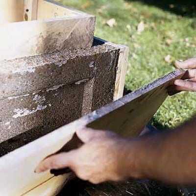 El canal necesitará al menos 24 horas para curar lo suficiente para desmoldar. Cuando no se puede rayar la superficie con una uña, está listo. Quitar todos los tornillos y sacar el panel inferior. Retire las paredes exteriores, apareciendo las tablas libres de la parafina con una paleta de jardín. Empuje que forman las paredes del interior hacia el centro para que contraer hacia adentro en sí mismos.