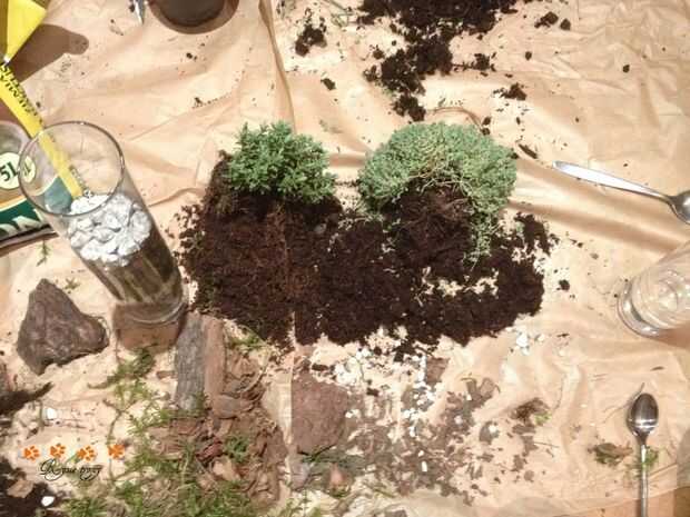 - Piedras grandes (como piedras) deben cubrirse con una capa de musgo antes de colocar las piedras más pequeñas. Esto debería ayudar a conseguir el efecto de niveles uniformemente sin mezcla de materiales.