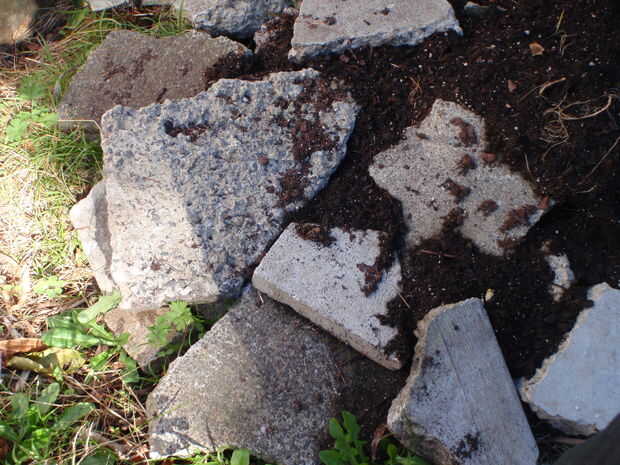 Cómo hacer un jardín de flores levantado de una pila de hormigón viejo y rocas (3 / 6 paso)