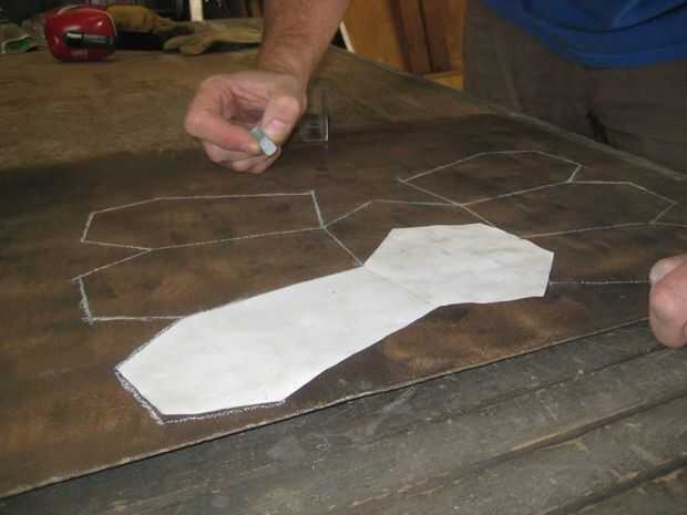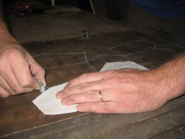 Elaborar de la manera más eficiente de poner las formas necesitada y entonces usando la plantilla de marca hacia fuera con la tiza o jabón de piedra.
