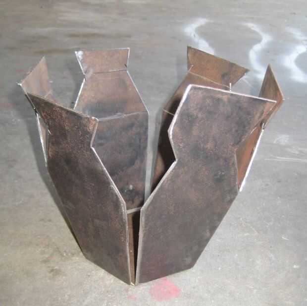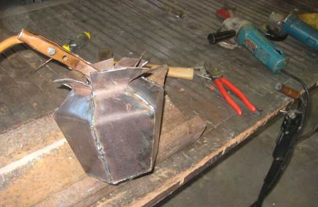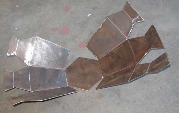 Dejé algunos de acero en la parte superior de cada pedazo del hombro para hacer un borde. Había doblado los pedazos del borde hacia fuera como formé los hombros. Éstos asumieron algunos martillazos para sacarlos bien para soldar. (Realmente no me convence que la llanta es necesaria. Sólo podría picarlo apagado. ¿Qué opinas?)