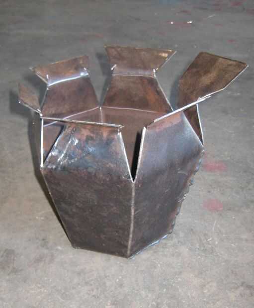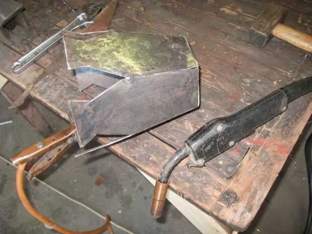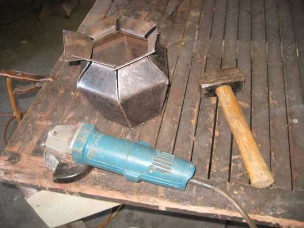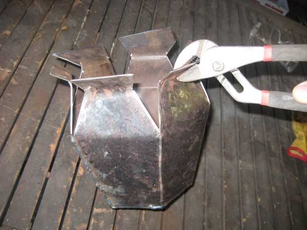 Utilizar un martillo para obtener articulaciones lo suficientemente apretadas como para soldar. Cuando una articulación se cierra lo virar y pasar a la siguiente. Cerca de la articulación y la tachuela. Y así sucesivamente hasta que todas las partes están soldadas. Luego doblar los hombros abajo y soldar.