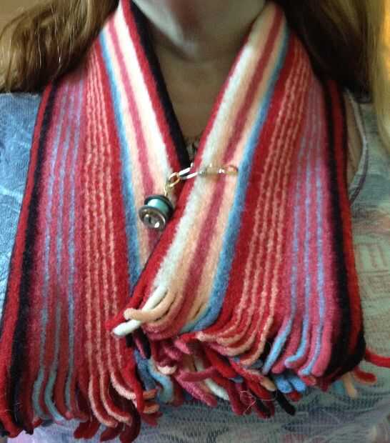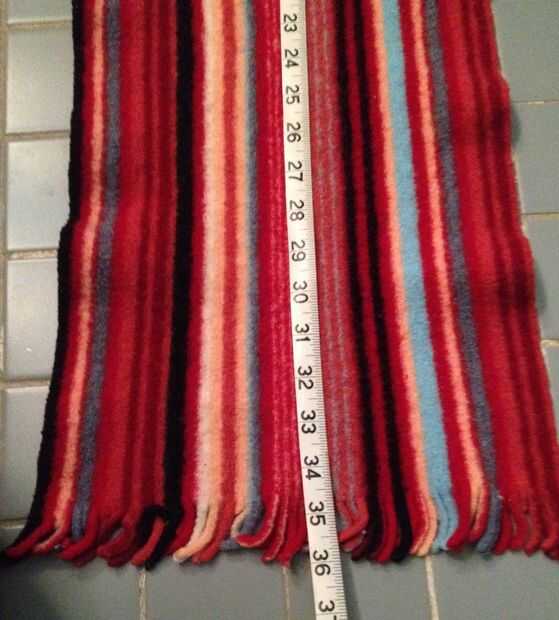 Esta bufanda de lana rayas solía ser tan larga que podía envuélvalo alrededor de mi cuello cuatro veces con un montón de extra colgando hacia abajo.