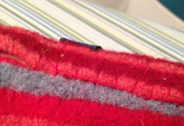 Luego, dio vuelta adentro hacia fuera, y manta cosida a él otra vez, para asegurarse de que el proyecto sería bonito y fuerte y mantener su forma.