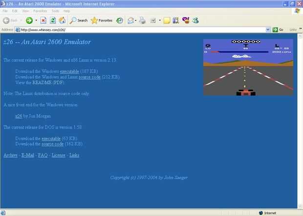 A continuación, es el emulador. Emulación de NES, SNES, Playstation y otros sistemas se ha convertido en un problema bastante con los años, aunque la locura parece haber muerto hacia abajo hasta cierto punto. Atari no es la excepción, y hay dos emuladores que parecen ser dignos de la Atari programación comunitaria. La primera es Z26 http://www.whimsey.com/z26/y Andrew sugiere esta es posiblemente la mejor solución para usuarios de Windows, sin embargo, sugiere utilizar Stella http://sourceforge.net/projects/stella/ para los usuarios de otros sistemas operativos. Z26 me pareció capaz de realizar todas las tareas pidió de él y no se lo recomiendo bastante.