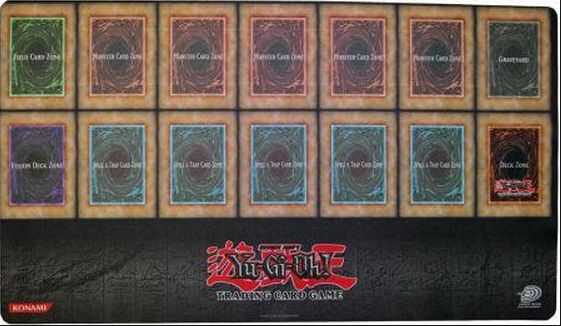 ¿Ver el Yu-Gi-Oh imagen de arriba? Esto es su simple reproducción. Usted puede hacer con el cartón! Sólo traza las tarjetas en la cartulina para una pila de descarte, la cubierta y todo lo que usted elige en lápiz. Etiquetarlos con el lápiz y traza en marcador o algo fácil de ver. Wa-La! Una alfombra de juego fácil. ¿va a tomar usted tiene gusto, no sé, menos de 10 minutos? Hecho.