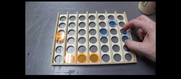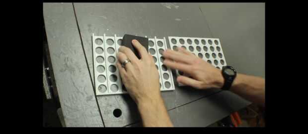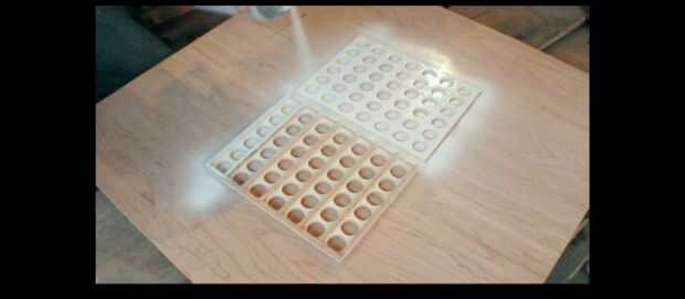 Recortar nueve piezas. A partir de la parte inferior, sujete las piezas con pegamento para madera, con las piezas del juego como separadores. Enfrenta a aerosol el interior blanco. Lije ligeramente los separadores para que el pegamento se adhiere a ellos.