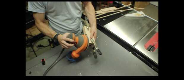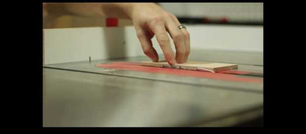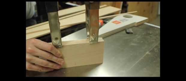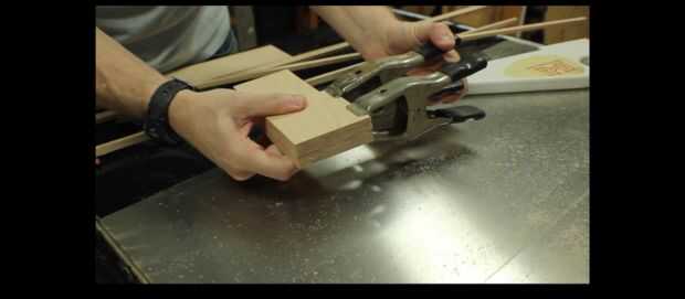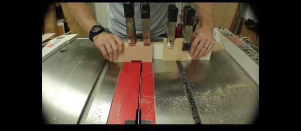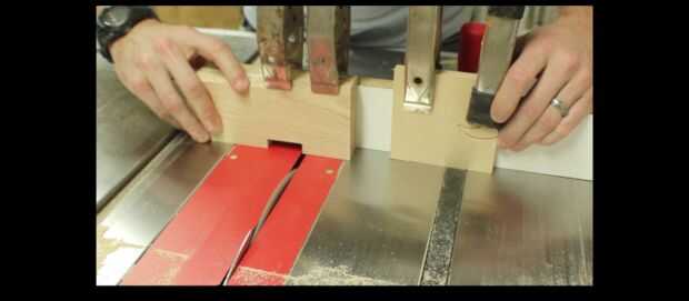 Cortar cuatro piezas a la altura deseada. Establece la altura de la cuchilla de la Sierra de mesa en el espesor exacto del material (1/4"). Alinee los cuatro pedazos y sujetarlos juntos. Establecer un tope a la mitad de la altura de la pieza, midiendo desde el extremo de la hoja. Pasar los trozos y picar a toda la madera hasta el tope. Mantenga las piezas alineadas y mover las pinzas hacia el lado opuesto. Picar a la madera de la misma manera que antes en la esquina opuesta. Lije todas las superficies de corte lisas.