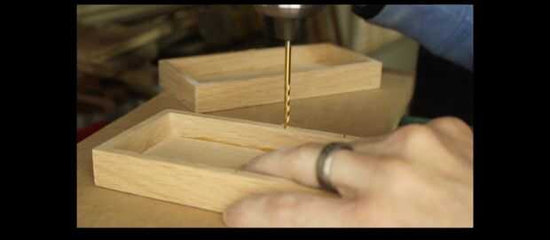 Perfore el agujero del mismo tamaño, la profundidad de sus imanes. Asegúrese de que la broca no salir al exterior de la caja. Hacer marcas correspondientes a los lados del tablero. Perforar el tablero de juego con la profundidad de los imanes.