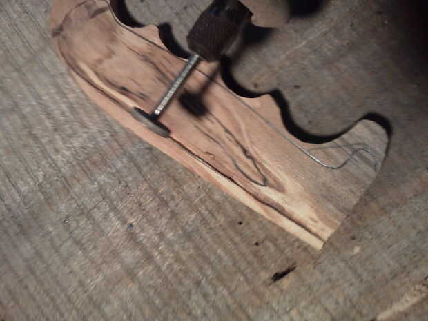 Ahora he empezado a cortar el espacio para el tang. La profundidad debe ser la misma que el grosor de la espiga. Usé una broca de diamante plano para cortar en el contorno.