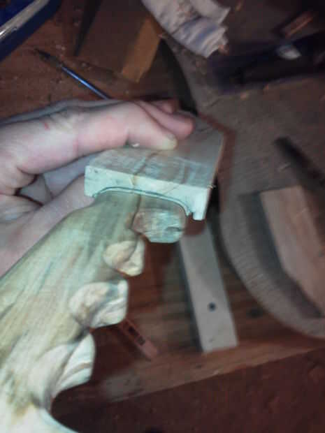 He dibujado un contorno áspero de la envoltura alrededor de la hoja, asegúrese de que hay aproximadamente 1/4" todo el camino alrededor. Esto dejará suficiente espacio para acabado de lijar y dar forma.