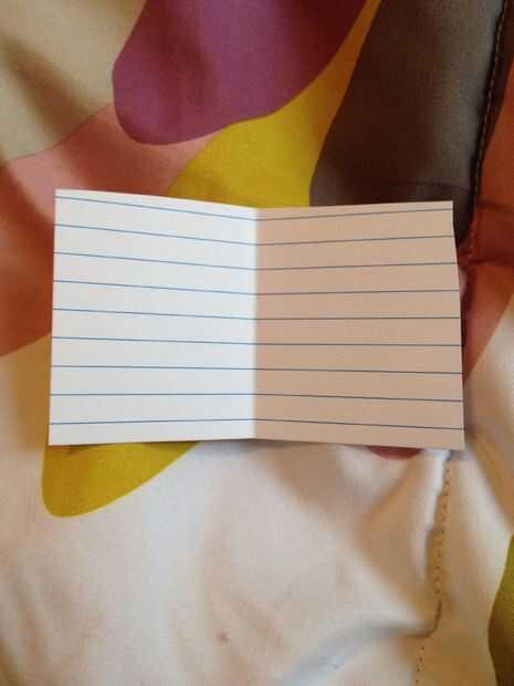 Corte unos 4" por 2" de una de las tarjetas de índice. Doblar por la mitad. Se trata de las instrucciones.